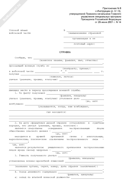 - 877Справка об обстоятельствах наступления страхового случая и размере оклада денежного содержания застрахованного лица (военнослужащего) в случае получения в период прохождения военной службы тяжелого или легкого увечья (ранения, травмы, контузии)