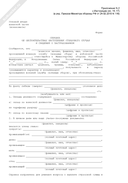 - 873Справка об обстоятельствах наступления страхового случая и сведения о застрахованном лице (военнослужащем) в период прохождения военной службы