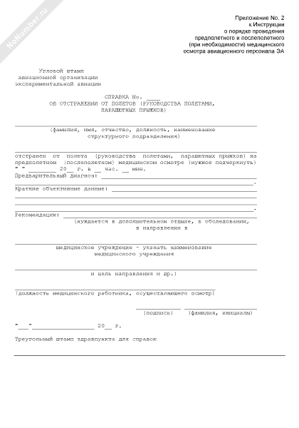 - 944Справка об отстранении от полетов (руководства полетами, парашютных прыжков)