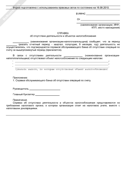 - 949Справка об отсутствии деятельности и объектов налогообложения у организации-налогоплательщика