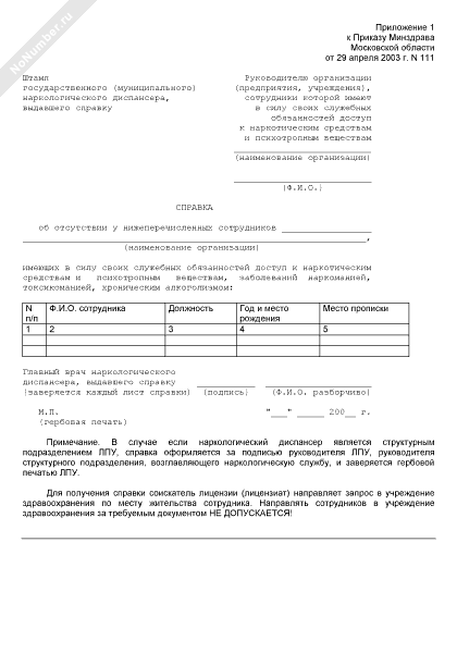 - 956Справка об отсутствии у сотрудников, имеющих в силу своих служебных обязанностей доступ к наркотическим средствам и психотропным веществам, заболеваний наркоманией, токсикоманией, хроническим алкоголизмом