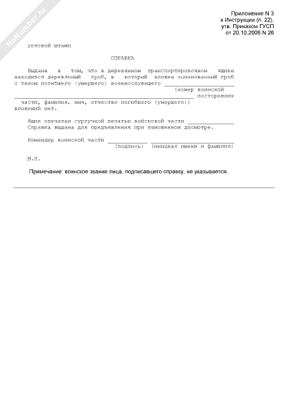 - 960Справка об отсутствии в деревянном транспортировочном ящике и в гробе с телом погибшего (умершего) военнослужащего посторонних вложений