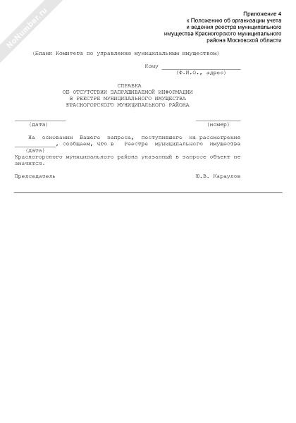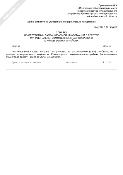 - 948Справка об отсутствии запрашиваемой информации в реестре муниципального имущества Красногорского муниципального района Московской области