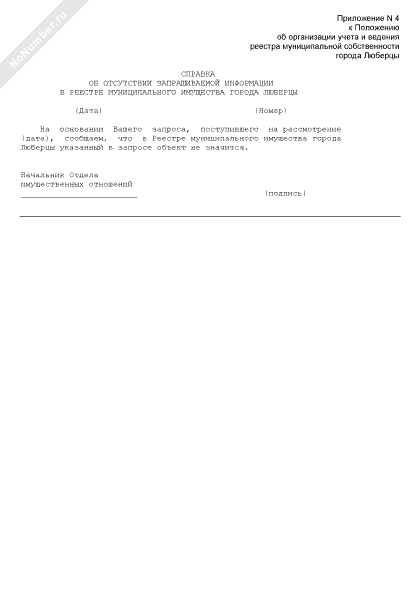 - 945Справка об отсутствии запрашиваемой информации в реестре муниципального имущества города Люберцы Люберецкого муниципального района Московской области