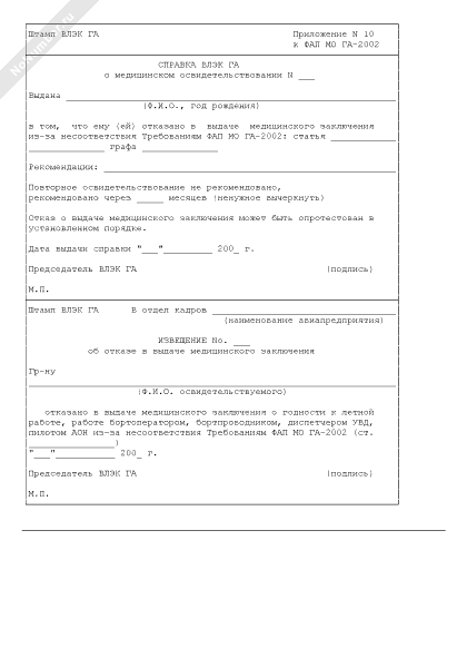 - 88Справка ВЛЭК ГА о медицинском освидетельствовании авиационного персонала
