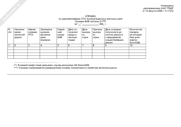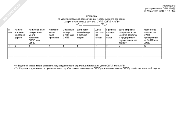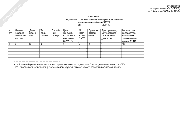 - 1041Справка по укомплектованию локомотивов грузовых поездов комплектами системы СУТП