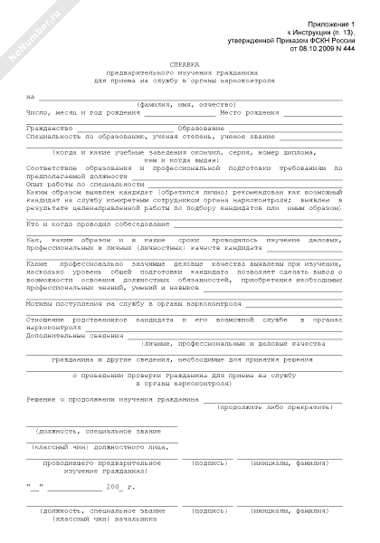 - 1047Справка предварительного изучения гражданина для приема на службу в органы наркоконтроля