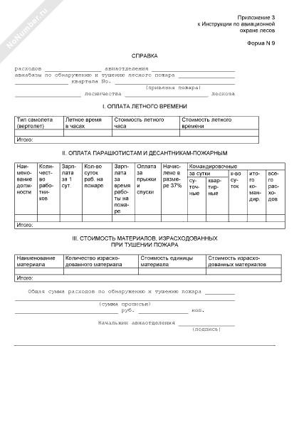 - 1051Справка расходов авиаотделения авиабазы по обнаружению и тушению лесного пожара (форма № 9)