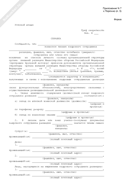 - 1053Справка руководителя организационной структуры органа внешней разведки Министерства обороны Российской Федерации об обстоятельствах гибели (смерти) кадрового сотрудника разведки или члена его семьи и размере оклада денежного содержания (должностного оклада) кадрового сотрудника разведки
