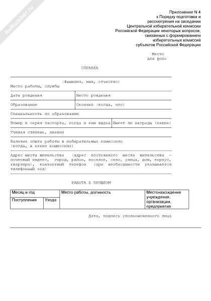 - 1057Справка с анкетными данными на кандидата для назначения членом избирательной комиссии