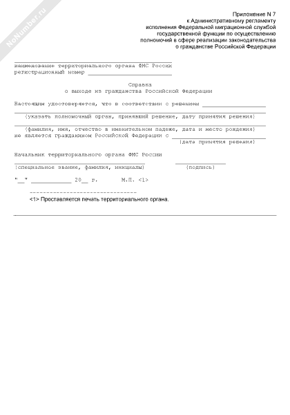 - 1073Справка Федеральной миграционной службы о выходе из гражданства Российской Федерации