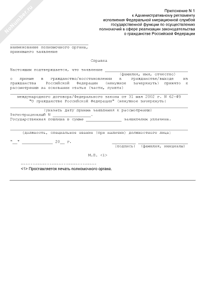 - 1072Справка Федеральной миграционной службы подтверждающая, что заявление о приеме в гражданство Российской Федерации (восстановлении в гражданстве Российской Федерации, выходе из гражданства Российской Федерации) принято к рассмотрению
