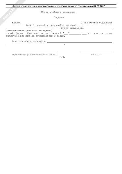 - 1061Справка с места учебы о ранее выплаченном матери ребенка пособии по беременности и родам