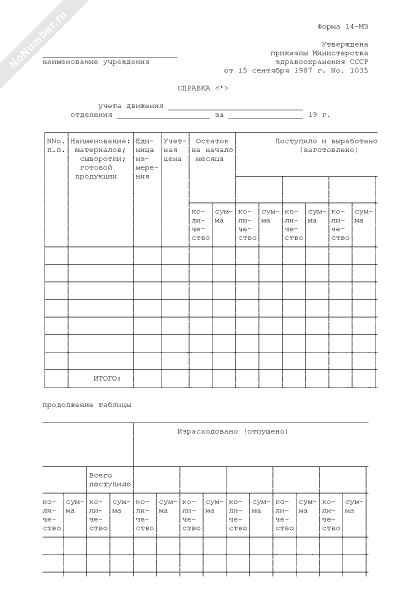 - 1069Справка учета движения. Форма № 14-МЗ