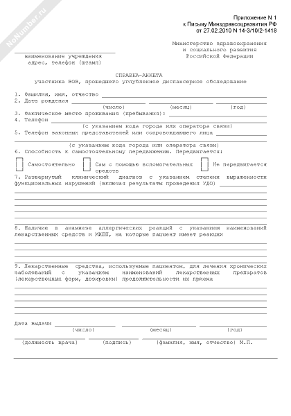 - 1127Справка-анкета участника ВОВ, прошедшего углубленное диспансерное обследование