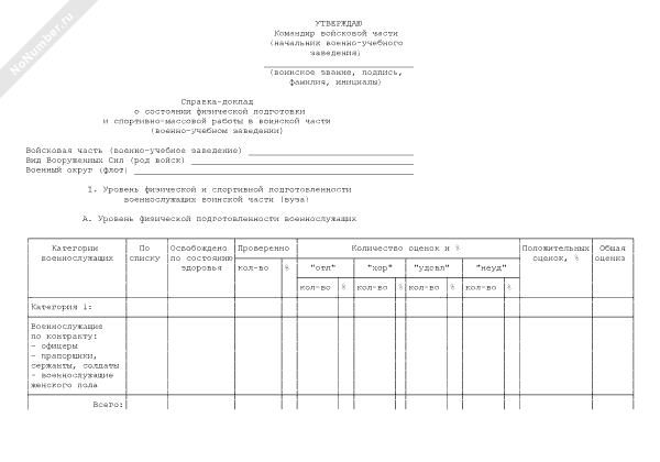 - 1136Справка-доклад о состоянии физической подготовки и спортивно-массовой работы в воинской части (военно-учебном заведении)