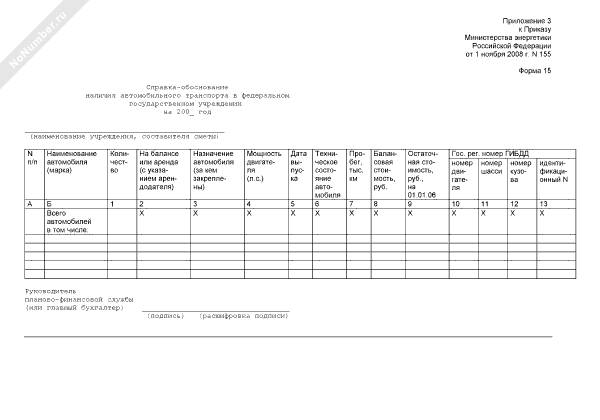 - 1139Справка-обоснование наличия автомобильного транспорта в федеральном государственном учреждении (форма № 15)
