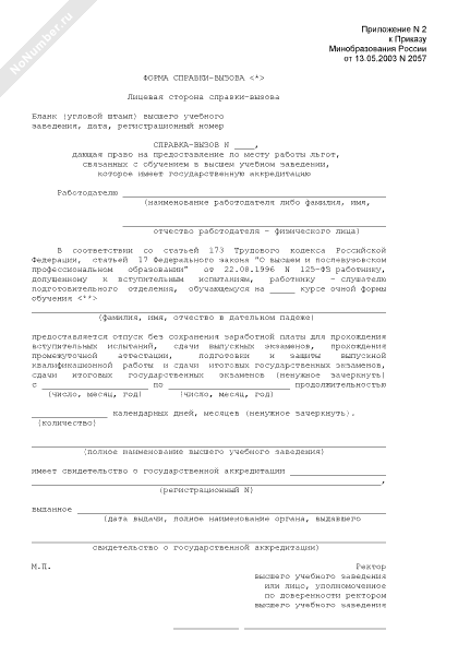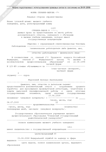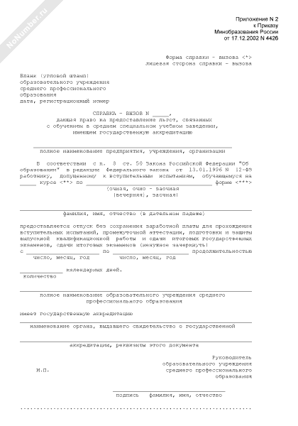 - 1131Справка-вызов, дающая право на предоставление по месту работы дополнительного отпуска, связанного с обучением в высшем учебном заведении, которое имеет государственную аккредитацию