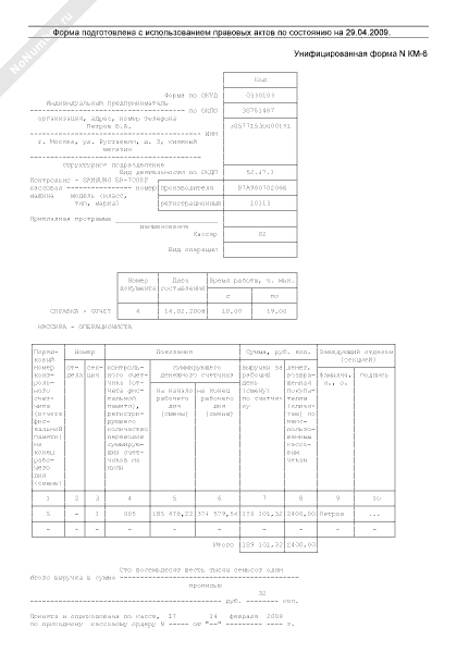 - 1142Справка-отчет кассира-операциониста. Унифицированная форма № КМ-6