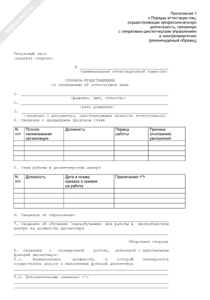 - 1145Справка-представление со сведениями об аттестуемом лице, осуществляющем профессиональную деятельность, связанную с оперативно-диспетчерским управлением в электроэнергетике
