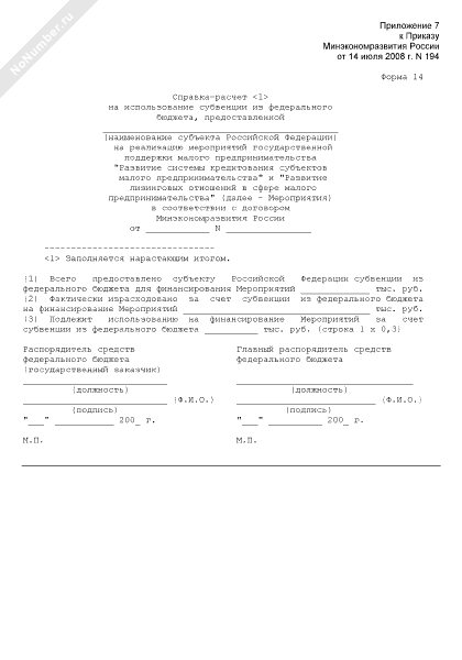 - 1151Справка-расчет на использование субвенции из федерального бюджета, предоставленной субъекту Российской Федерации на реализацию мероприятий государственной поддержки малого предпринимательства «Развитие системы кредитования субъектов малого предпринимательства» и «Развитие лизинговых отношений в сфере малого предпринимательства» в соответствии с договором Минэкономразвития России (форма № 14)