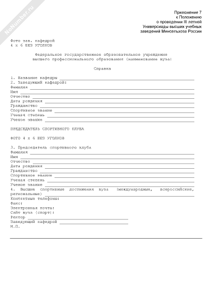 - 113Справка высшего учебного заведения для допуска к летней Универсиаде высших учебных заведений Минсельхоза России от сборной команды федерального государственного образовательного учреждения высшего профессионального образования