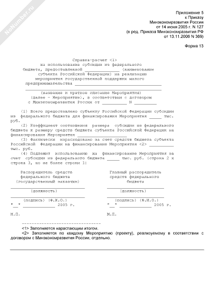 - 1181Справка-расчет на использование субсидии из федерального бюджета, предоставленной субъекту Российской Федерации на реализацию Мероприятия государственной поддержки малого предпринимательства (форма № 13)