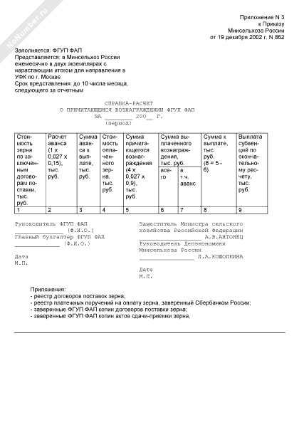 - 1190Справка-расчет о причитающемся вознаграждении федерального агентства по регулированию продовольственного рынка при Минсельхозе России