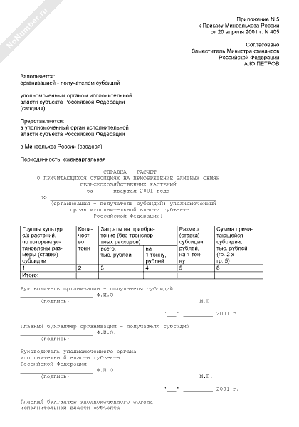 - 1197Справка-расчет о причитающихся субсидиях на приобретение элитных семян сельскохозяйственных растений