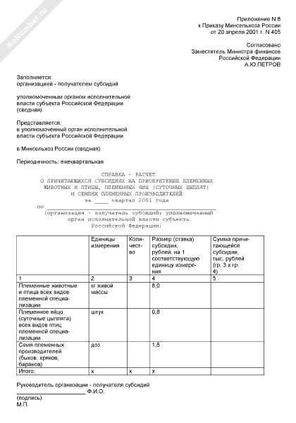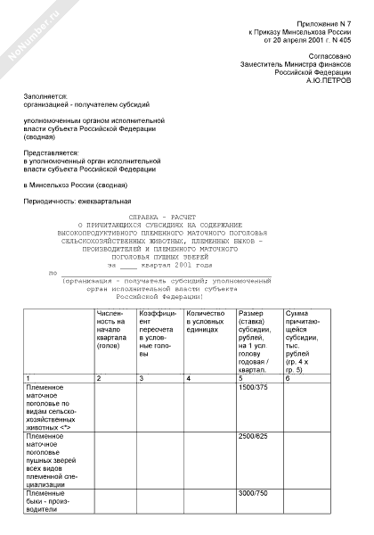- 1198Справка-расчет о причитающихся субсидиях на содержание высокопродуктивного племенного маточного поголовья сельскохозяйственных животных, племенных быков-производителей и племенного маточного поголовья пушных зверей