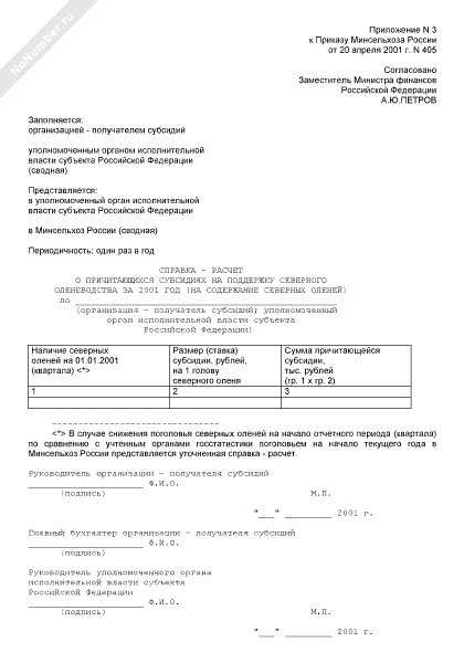 - 1195Справка-расчет о причитающихся субсидиях на поддержку северного оленеводства за 2001 год (на содержание северных оленей)