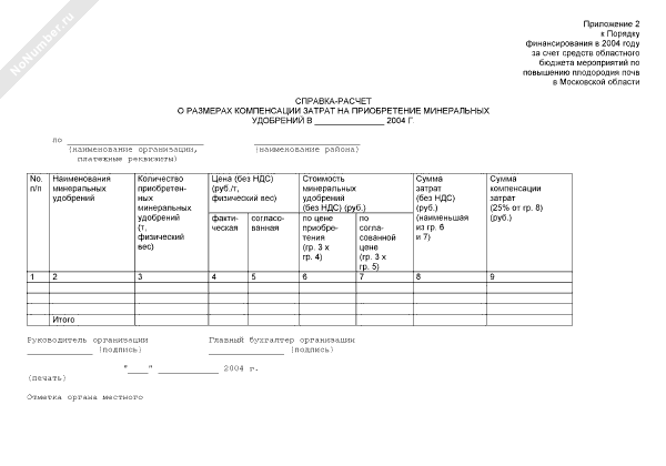 - 1187Справка-расчет о размерах компенсации затрат на приобретение минеральных удобрений