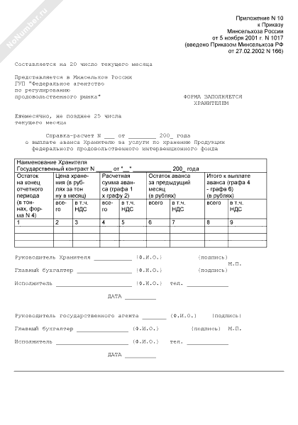 - 1183Справка-расчет о выплате аванса хранителю за услуги по хранению продукции федерального продовольственного интервенционного фонда