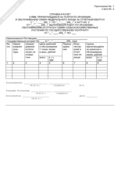 - 1184Справка-расчет сумм, причитающихся за услуги по хранению и обслуживанию семян федерального фонда, за отчетный квартал к акту выполнения работ по хранению, обслуживанию и отпуску семян сельскохозяйственных растений по государственному контракту