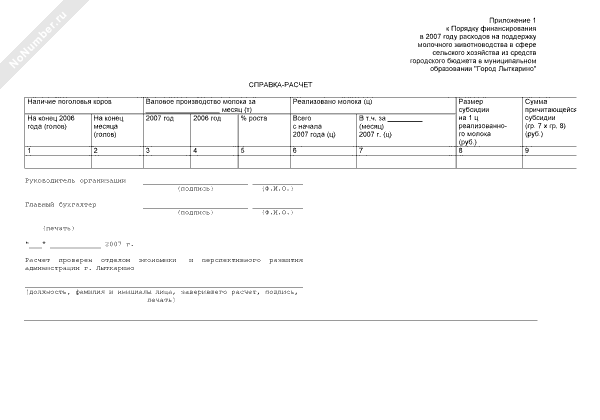 - 1228Справка-расчет для получения финансовой поддержки (субсидии) сельскохозяйственным товаропроизводителем из средств городского бюджета города Лыткарино Московской области