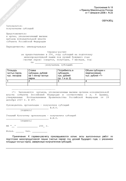 - 1238Справка-расчет на предоставление субсидий из федерального бюджета бюджетам субъектов Российской Федерации на подготовку низкопродуктивной пашни под урожай будущего года