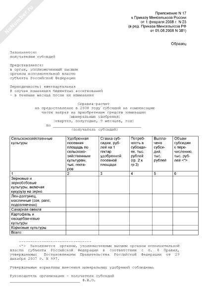 - 1240Справка-расчет на предоставление субсидий из федерального бюджета бюджетам субъектов Российской Федерации на компенсацию части затрат на приобретение средств химизации (минеральные удобрения)