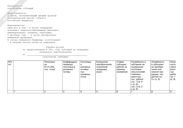 - 1231Справка-расчет на предоставление субсидий из федерального бюджета бюджетам субъектов Российской Федерации на поддержку племенного животноводства