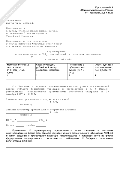 - 1232Справка-расчет на предоставление субсидий из федерального бюджета бюджетам субъектов Российской Федерации на поддержку овцеводства