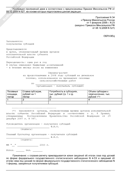 - 1230Справка-расчет на предоставление в 2008 году субсидий на дизельное топливо, использованное на проведение сезонных сельскохозяйственных работ
