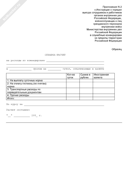 - 1227Справка-расчет на расходы по командировке сотрудников и работников органов внутренних дел Российской Федерации, военнослужащих и лиц гражданского персонала внутренних войск Министерства внутренних дел Российской Федерации