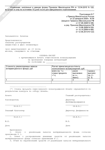 - 1229Справка-расчет о причитающемся агенту комиссионном вознаграждении за проведение товарных интервенций