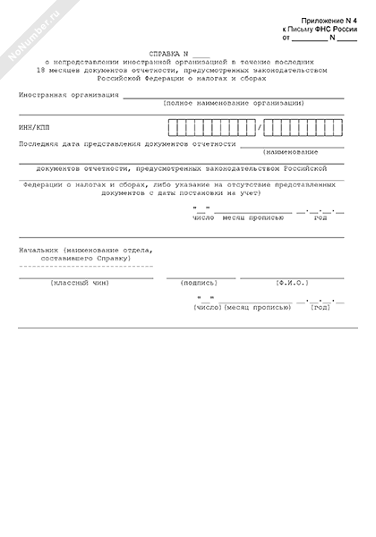 - 1286Справка о непредставлении иностранной организацией в течение последних 18 месяцев документов отчетности, предусмотренных законодательством Российской Федерации о налогах и сборах
