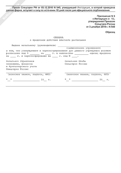 - 1288Справка о продлении действия штатного расписания гражданского персонала воинских формирований и организаций при Спецстрое России