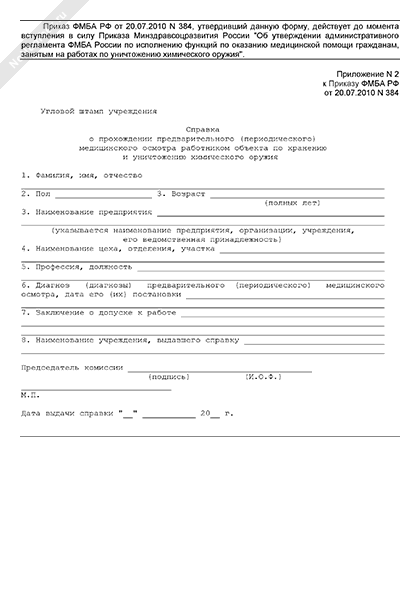 - 1289Справка о прохождении предварительного (периодического) медицинского осмотра работником объекта по хранению и уничтожению химического оружия