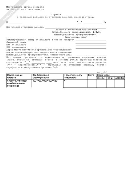 - 1292Справка о состоянии расчетов по страховым взносам, пеням и штрафам плательщика страховых взносов в Пенсионный фонд Российской Федерации