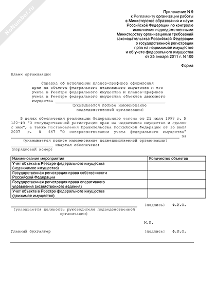 - 1306Справка об исполнении планов-графиков оформления прав на объекты федерального недвижимого имущества и его учета в Реестре федерального имущества и планов-графиков учета в Реестре федерального имущества объектов движимого имущества