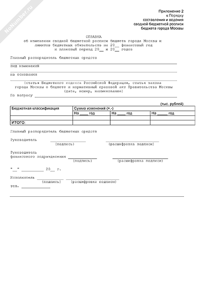 - 1304Справка об изменении сводной бюджетной росписи бюджета города Москвы и лимитов бюджетных обязательств на финансовый год и плановый период