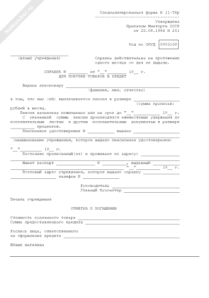 - 136Справка для покупки товара в кредит. Специализированная форма № 11-ТКр