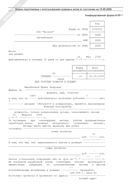 - 135Справка для покупки товаров в кредит. Унифицированная форма № КР-1